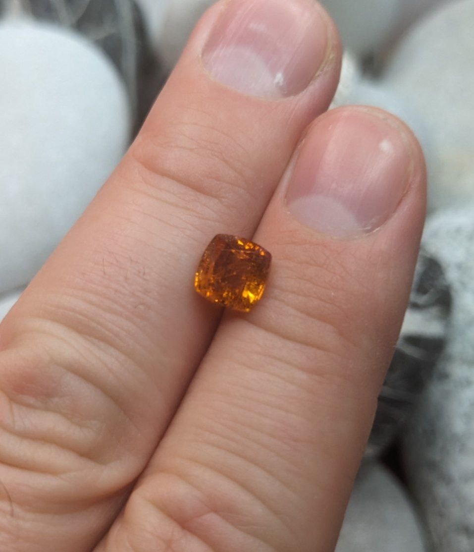 Яркий, искрящийся камень с небольшим количеством включений 💎 Камень: природный спессартин 🗺 Происхождение: Пакистан, Кашмир 🎨 Цвет: оранжевый ⚖ Вес: 2.07 ct 📏 Размеры: 7 x 7 мм. 🧪 Облагораживание: нет 💰Цена: 6500 руб. #setara_каталог #спессартин