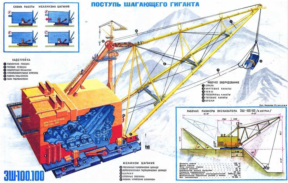 "Самым большим экскаватором стал созданный и начавший работу на угольном разрезе «Назаровский» мощный шагающий экскаватор ЭШ-100.100. В его ковше можно было поместить малогабаритную двухкомнатную квартиру. Создавал машину коллектив конструкторов под руководством В. Л. Раскина, а наиболее ответственную часть – гидравлическую систему шагания – конструировала инженер М. А. Казаринова, ученица Б. И. Сатовского и Т. Е. Исаева. Она уже много лет руководила группой гидравликов при конструкторском бюро шагающих экскаваторов, когда ей поручили продумать механизм шагания для гиганта 100.100. Не вдаваясь в детали, скажем: она сконструировала свой механизм шагания, не такой, как у учителя Т. Е. Исаева. Она придумала другой механизм передвижения лыж и опорной базы. На обсуждениях многие специалисты ей не поверили. На заключительном совете главный инженер завода Рыжков сказал: – Задумка интересная. Но все же скажите честно, Маргарита Александровна, ходить-то он будет?"