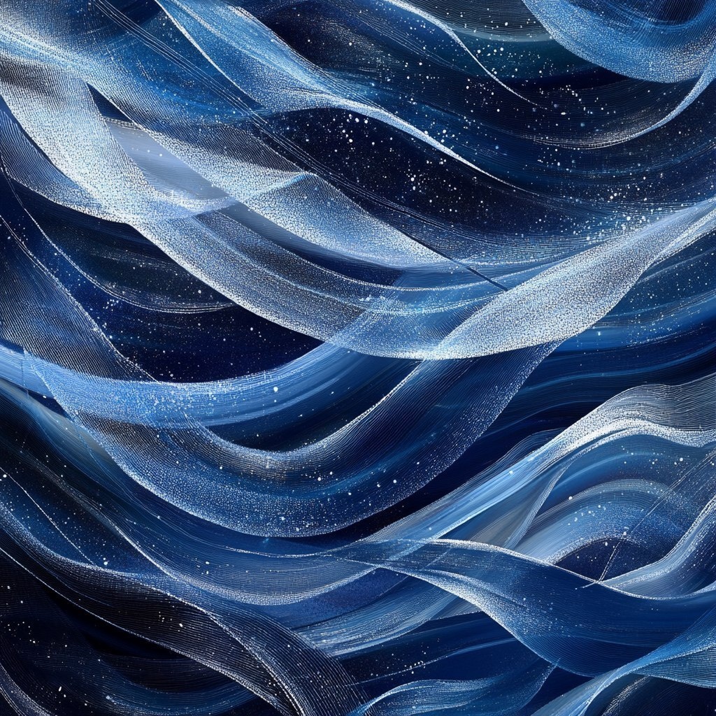 Создано на основе запроса: a texture of abstract blue waves and lines with darkblue and white and lightblue thin stripes and some sparkles