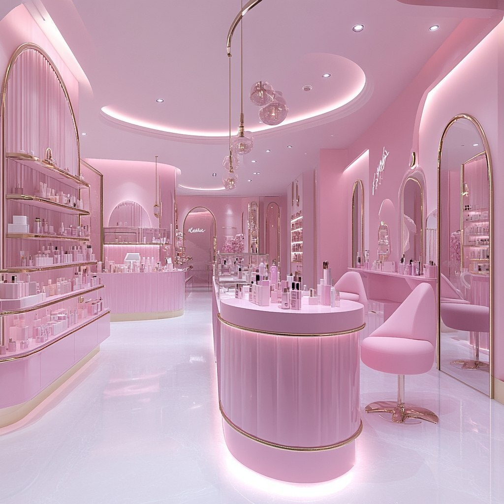 Создано на основе запроса: Makeup Beauty Shop Pink and Modern Style Shop Makeup cosmetics are on display and it is a clean and luxurious