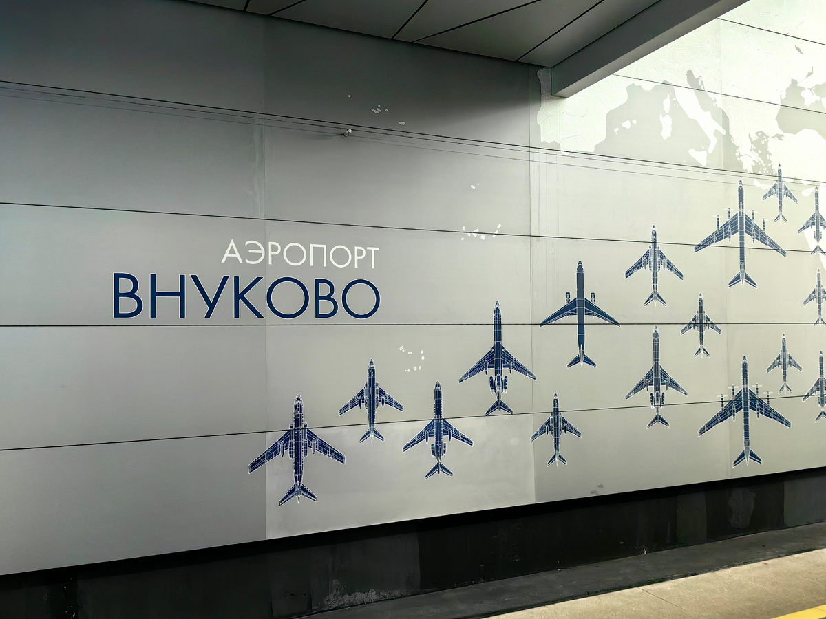 Это уже, конечно, давно не новость, но я вот впервые испытала. Метро в московский аэропорт Внуково. Это же просто супер как удобно! Я вообще-то в Домодедово живу и вылетать предпочитаю из нашего аэропорта, но иногда приходится и из других. Очень печалит, что порой на дорогу от дома до другого аэропорта может уйти времени столько же, а иногда и побольше, сколько будет сам перелёт длиться. А тут — так здорово! Из метро сразу в аэропорт попадаешь и не нужно никаких пересадок и стыковок. Станция метро «Аэропорт Внуково» открылась 6 сентября 2023 года. Понравилось оформление самой станции. Оно посвящено гражданской авиации, а именно истории конструкторского бюро Туполева. На стенах вдоль пути можно увидеть множество самолётов, которые пролетают над картой России. А на торцевой стене, по обе стороны от лифтовой шахты, размещены портреты выдающихся отечественных конструкторов — Андрея Николаевича и Алексея Андреевича Туполевых. Панели из алюминия с замысловатым дизайном, напоминающие элемен