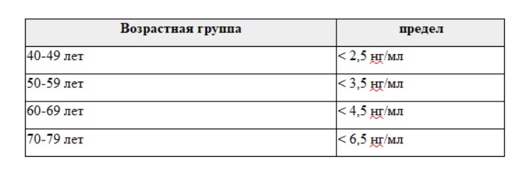 Доля выявленных карцином, диагностированных со значениями от 10 до 20 нг/мл, составляет примерно 50–60%.