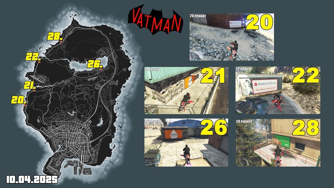 Расположение плакатов в GTA Online на сегодня (10 апреля)