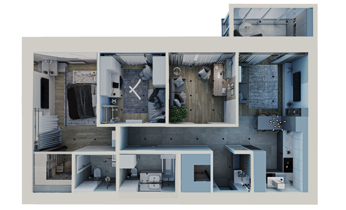 Мы разработали уютный и удобный интерьер для семьи с двумя детьми, один из которых — младенец. В квартире есть всё необходимое: отдельная детская, спокойная спальня для родителей, просторная кухня-гостиная для семейных вечеров и места для хранения. Светлые оттенки, тёплые акценты и продуманная планировка сделали квартиру комфортной для жизни и отдыха. Прихожая Кухня-гостиная с балконом Спальня Детская Кабинет Ванная 📩 Мечтаете о таком же дизайне?