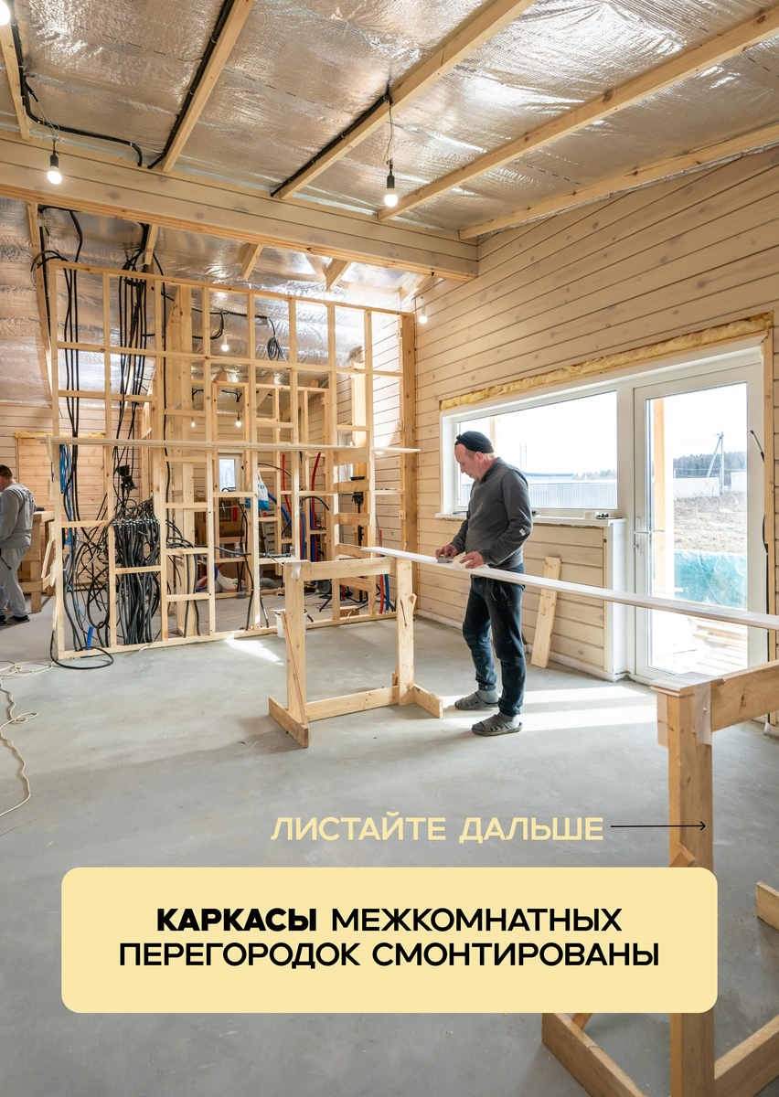 Обзор черновых работ в доме из бруса с техническими комментариями. Дом общей площадью 99 кв.м (полезная — 80 кв.м). Брусовые стены были отшлифованы и покрашены до монтажа каркасных стен. А вот каркасные перегородки и потолок нам только предстоит подшить имитацией бруса, которую до монтажа необходимо отшлифовать и покрасить. Понравился пост? С вас лайк!