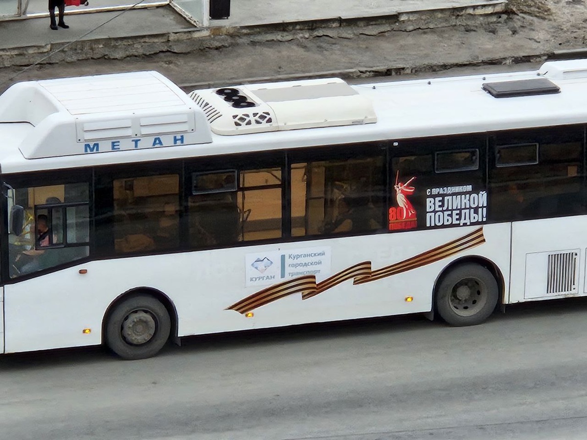 🟢Курганский общественный транспорт украсили ко Дню Победы