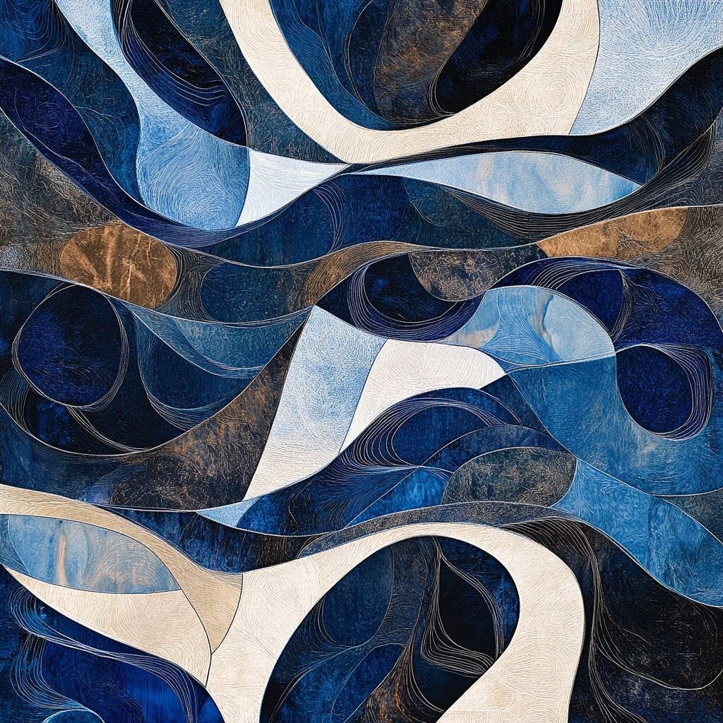 Создано на основе запроса: texture with an abstract interwoven pattern. wavey organic shapes and lines. the colors are a deep blue, middle blue, some brown and creme colors --- Автоперевод: Текстура с абстрактным переплетенным рисунком. Красиво получилось? 🤔 https://dzen.ru/id/65c0c65c86e4f837c27b24d7 #ИИ #AI #нейросеть #midjourney #art