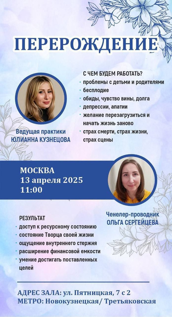 Сегодня увидела, что моя хорошая знакомая приезжает из Казани для того, чтобы провести практику "Перерождение".