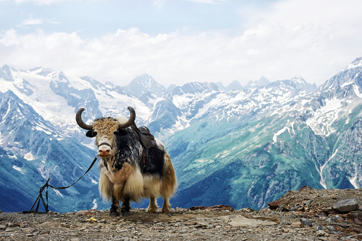 Мастер-класс по селфи на фоне гор от важного домбайского яка. 🤳