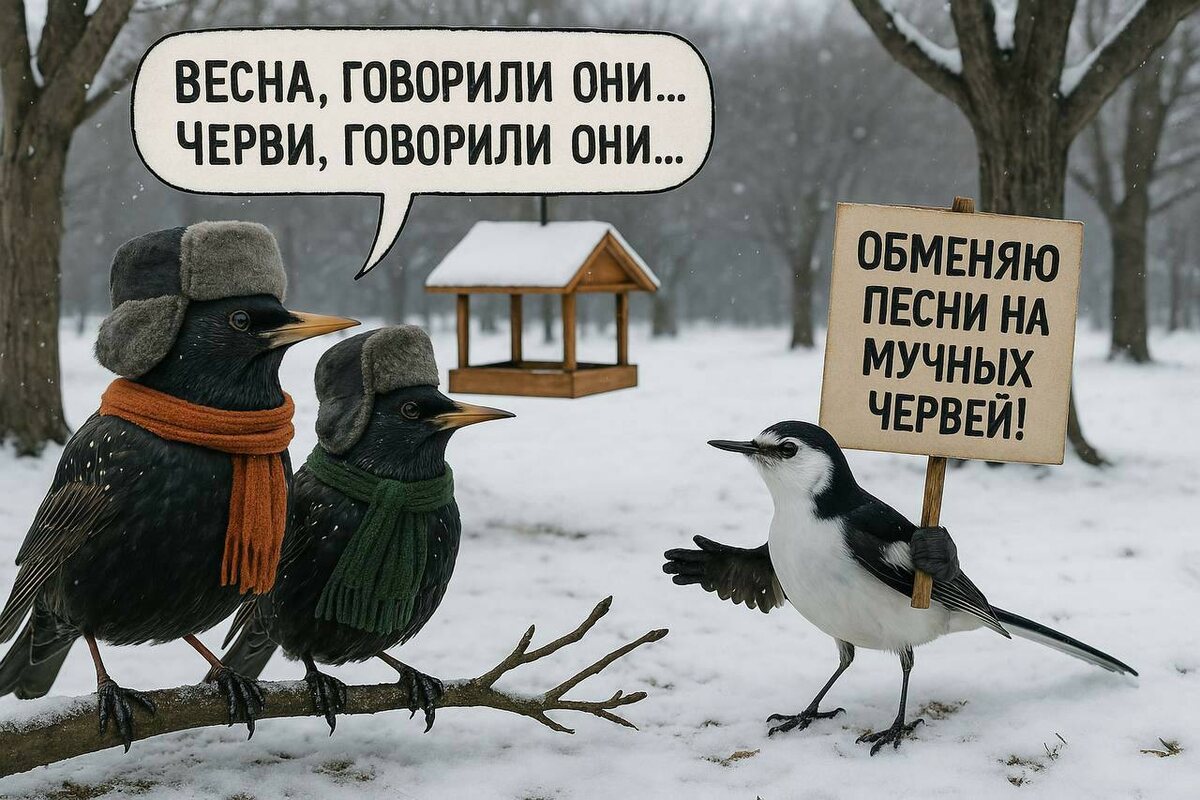 🔠🔠🔠🔠🔠🔠🔠👻 🔠🔠🔠🔠 🐦 Скворушки прилетели, а кушать нечего! 🙏 Птицам нужна наша помощь! ❄️ Птицы остались без еды из-за выпавшего в апреле снега — жители Москвы могут им помочь, пополнив кормушки. 🙋♀️ Учитель начальной школы Галина Владимировна Рындина даст нам несколько советов. 🆘 Критическая ситуация: 🐦⬛️ Дрозды рябинники, перелётные гости, прибыли в Москву на прошлой неделе. Обычно они питаются червяками, жуками, почками, а летом — ягодами 🍒. Но внезапная зима засыпала всё снегом — птицы отчаянно ковыряют замёрзшую землю под ёлками 🎄, ищут пропитание… но тщетно. ⚠️ Без нашей поддержки они не переживут снежную неделю! 🐤 Чем помочь птицам? 🍽 Рассыпать на земле (где нет снега: теплотрассы, под скамейками, под хвойными деревьями): — Варёное яйцо 🥚 (мелко порезать, можно со скорлупой – кальций необходим для формирования яиц) — Замороженные ягоды: калина, брусника, клюква ❄️🍇 — Творог (несолёный), тонко нарезанная морковь 🥕 — Семена, зерно 🌾 (для скворцов и д
