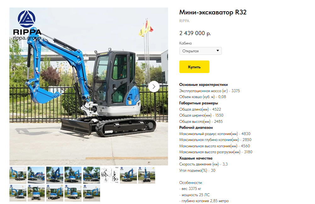 Гусеничный ход обеспечивает лучшее сцепление с грунтом, особенно на рыхлых, болотистых или неровных поверхностях. Например, мини-экскаватор Rippa R32 (гусеничный) легко работает на склонах до 30° без риска опрокидывания.