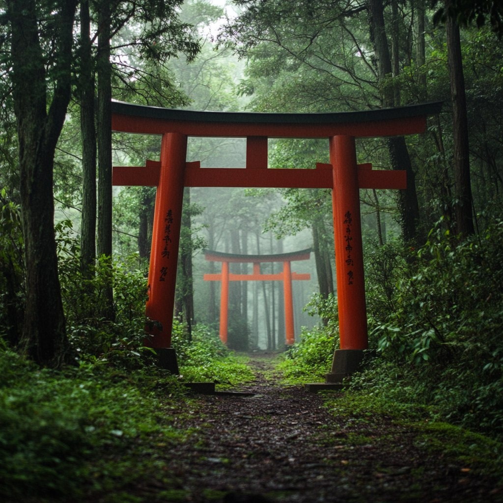 Создано на основе запроса: Red shrine torii gate in the forest