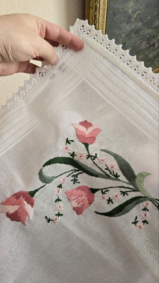 Скатерть с вышивкой хлопок 100 % ❤️🔥83 на 84❤️🔥 Германия ,декор по четырем углам большие букеты.