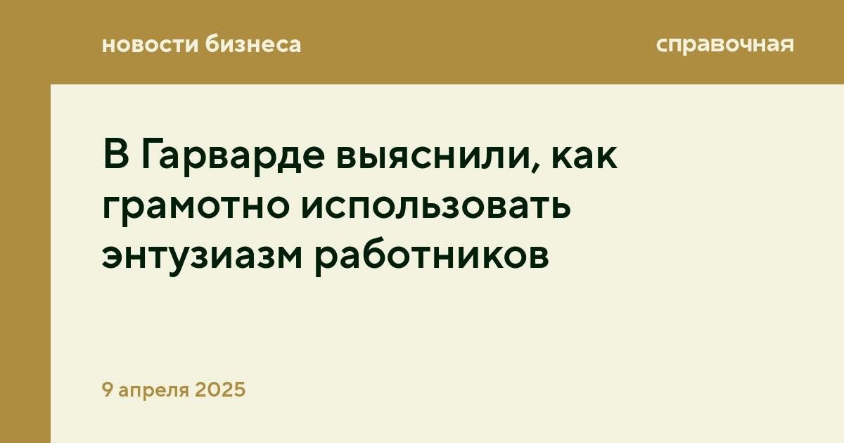 ↗️ Многие менеджеры считают энтузиазм одним из важнейших качеств в сотрудниках и делают ставку на тех, кто часто его проявляет. Доцент Harvard Business School Джон Яхимович провёл несколько исследований и выяснил, что воодушевлённая работа имеет свои особенности, которые стоит учитывать. Рассказали о них подробнее по этой ссылке. 🔥 @spravochnaya 🔥