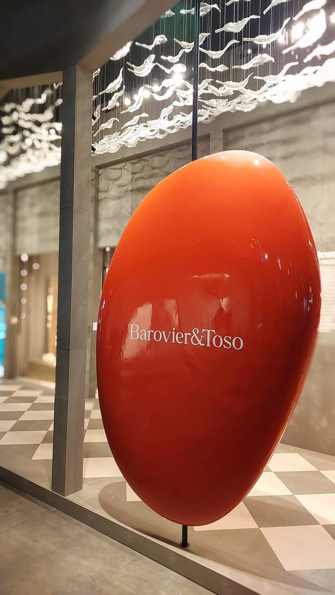 Маски на стенде отсылают к тому, что каждое изделие на фабрике выдувается и изготавливается вручную.