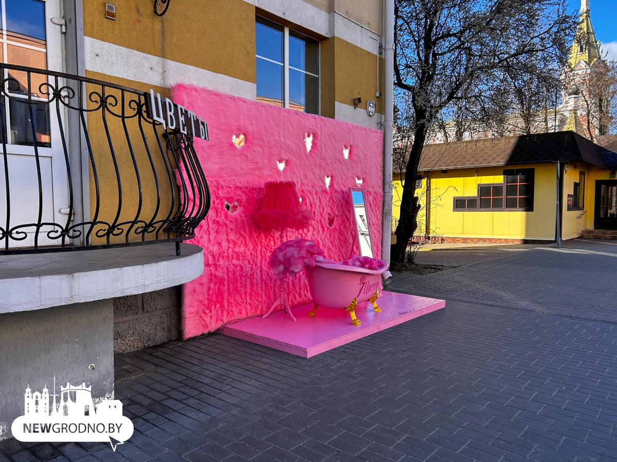 Цветы, угощения и … розовая ванна: Собрали самые необычные фотозоны с улиц Гродно