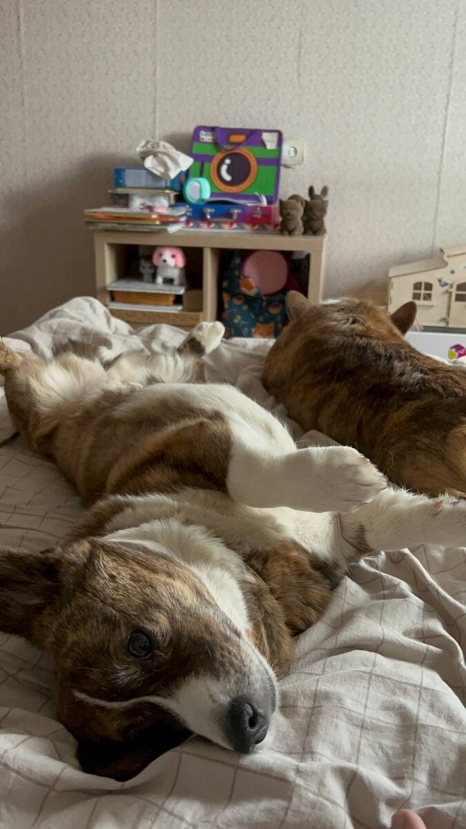 Пока мы в Гималаях, у кого-то — санаторий А тем временем наши собственные собаки чувствуют себя явно лучше нас. Нет, ну правда — у них там какой-то элитный каникул-пакет all inclusive. Наш неизменный ситтер @Tatyana_Karavanova и по совместительству добрый кинолог —(это, новый подвид кинолога, который не дрессует собаку страхом, а договаривается с любовью) https://t.me/signal_primirenia сначала занималась с Бонни и Ру, потом водила их на площадку осваивать новые территории и снаряды. Да-да, не просто "погуляли", а "проходили курс молодых бойцов". У Татьяны рядом с домом построили две крутые площадки, так что наши хвосты там теперь осваивают турник, бум и, возможно, шведскую стенку 😆. Но дальше — ещё интереснее. Новый уровень ситтинга: если хозяева не против — всей семьёй, с собаками и своим псом Медей, Таня уехала с ними загород… в ОТЕЛЬ- Юнховград (под Калугой) , где можно с собаками Приехали, освоились, и тут — мультики. Я даже не знала, что мои собаки такое умеют. Они с дочкой