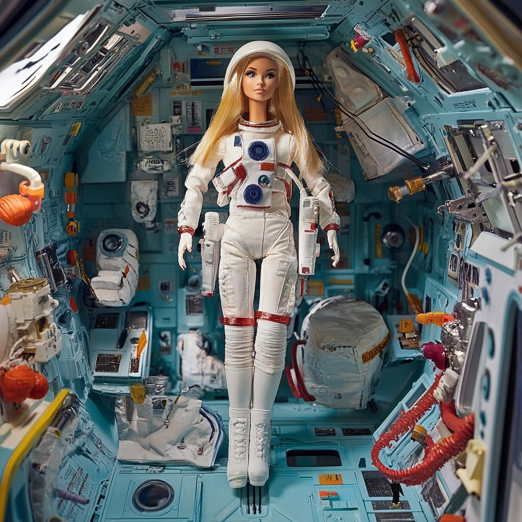 Создано на основе запроса: astronaut Barbie in a realistic spaceships haul