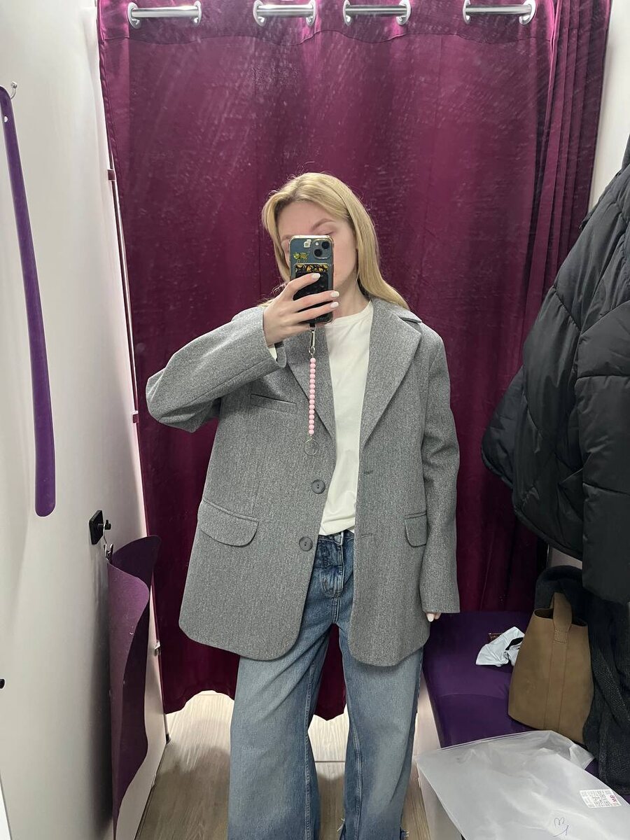 Делюсь своей находкой ☁️ Пальто пиджак, по очень хорошей цене! ~ 3000 Если честно, особо никаких ставок на него делала, отзывы противоречивые, но решила заказать посмотреть И мне понравилось! Не уверена, что состав пишут верный, но как есть Арт. 279354901 Периодически появляется в наличии Оверсайз, на мне размер 42(s) Как легкое пальто или более теплый, удлиненный пиджак, есть вставки в плечах Да, такая форма и длинна может подойти не всем, тут нужно мерить Вчера в нем уже выходила вместе с юбкой в горошек 🫛
