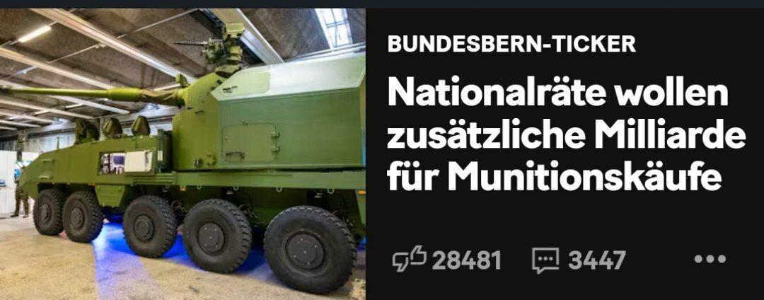 📌 " Члены Национального совета хотят выделить 1 млрд швейцарских франков на закупку боеприпасов