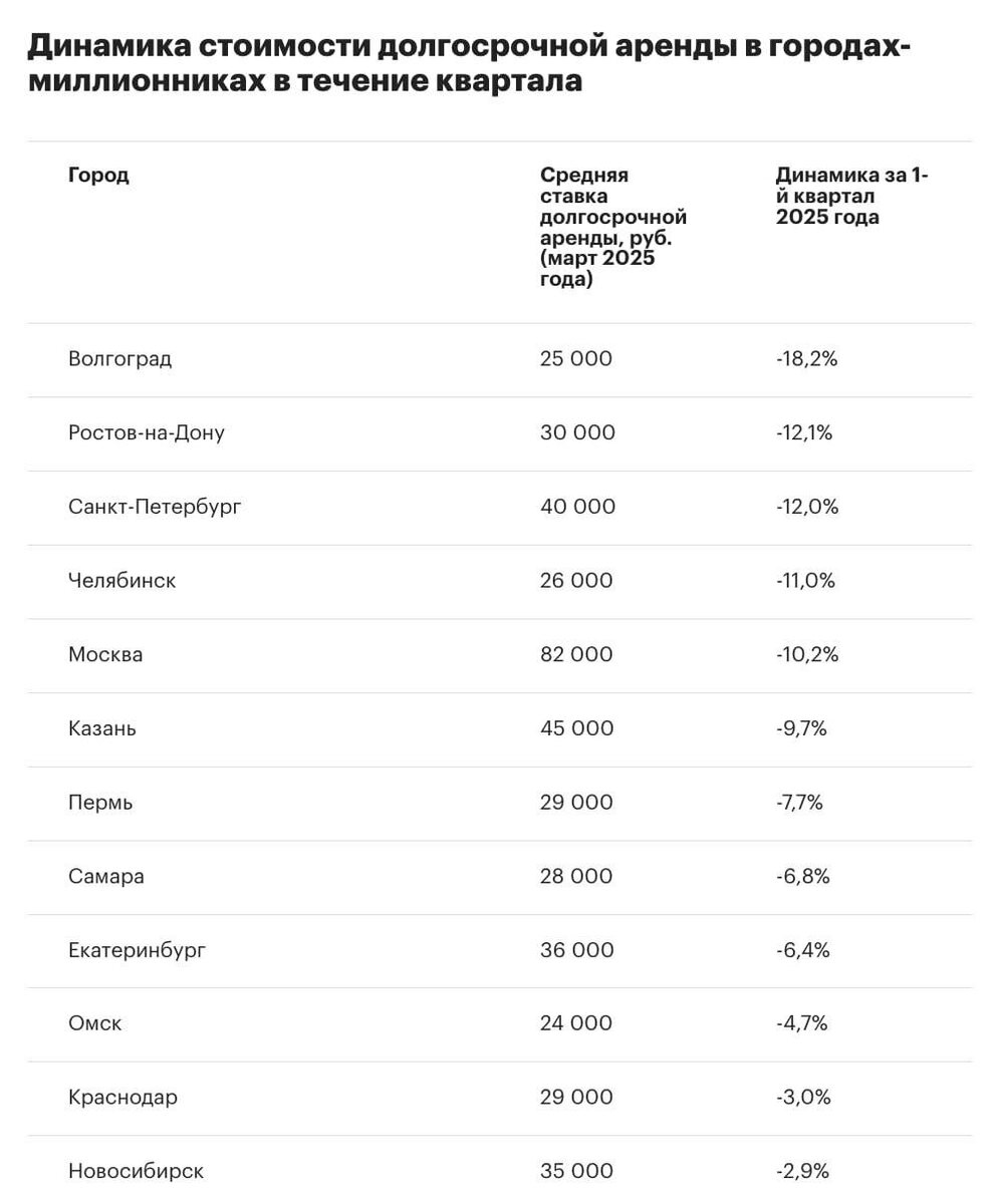 Лидеры падения цен — Волгоград, Ростов-на-Дону и Санкт-Петербург. Причина — увеличение числа квартир в аренду, утверждают эксперты.