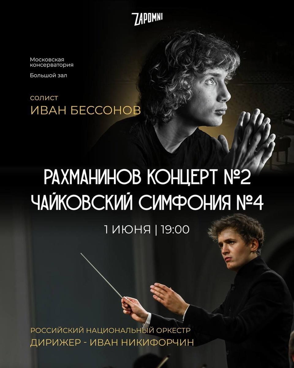 Вечер русской классики с Иваном Бессоновым и Российским национальным оркестром под управлением Ивана Никифорчина. 1 июня, 19:00, в Большом зале консерватории выдающийся пианист Иван Бессонов исполнит Концерт для фортепиано с оркестром № 2 до минор Сергея Рахманинова — одно из величайших произведений в репертуаре фортепиано с оркестром, признанное жемчужиной мировой музыкальной литературы. В программе также — Четвёртая симфония ми минор Петра Ильича Чайковского, произведение, наполненное мощной драматургией и яркими эмоциональными контрастами. Не упустите шанс услышать два шедевра классической музыки в одном концерте. Билеты уже в продаже.