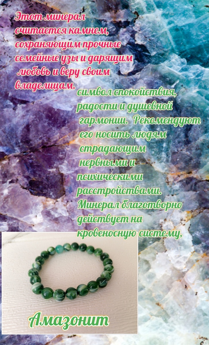 Хочу представить вам очередную работу. Браслет с Амазонитом. Зеленый непрозрачный и тяжел, В породе уж он очень страшен. Зато в преданьях скифов он умен, И смел, и предан, и семьей украшен. Похож на лазурит и малахит Прожилками белесыми такими.... Браслет выполнен на заказ под потребности заказчицы.