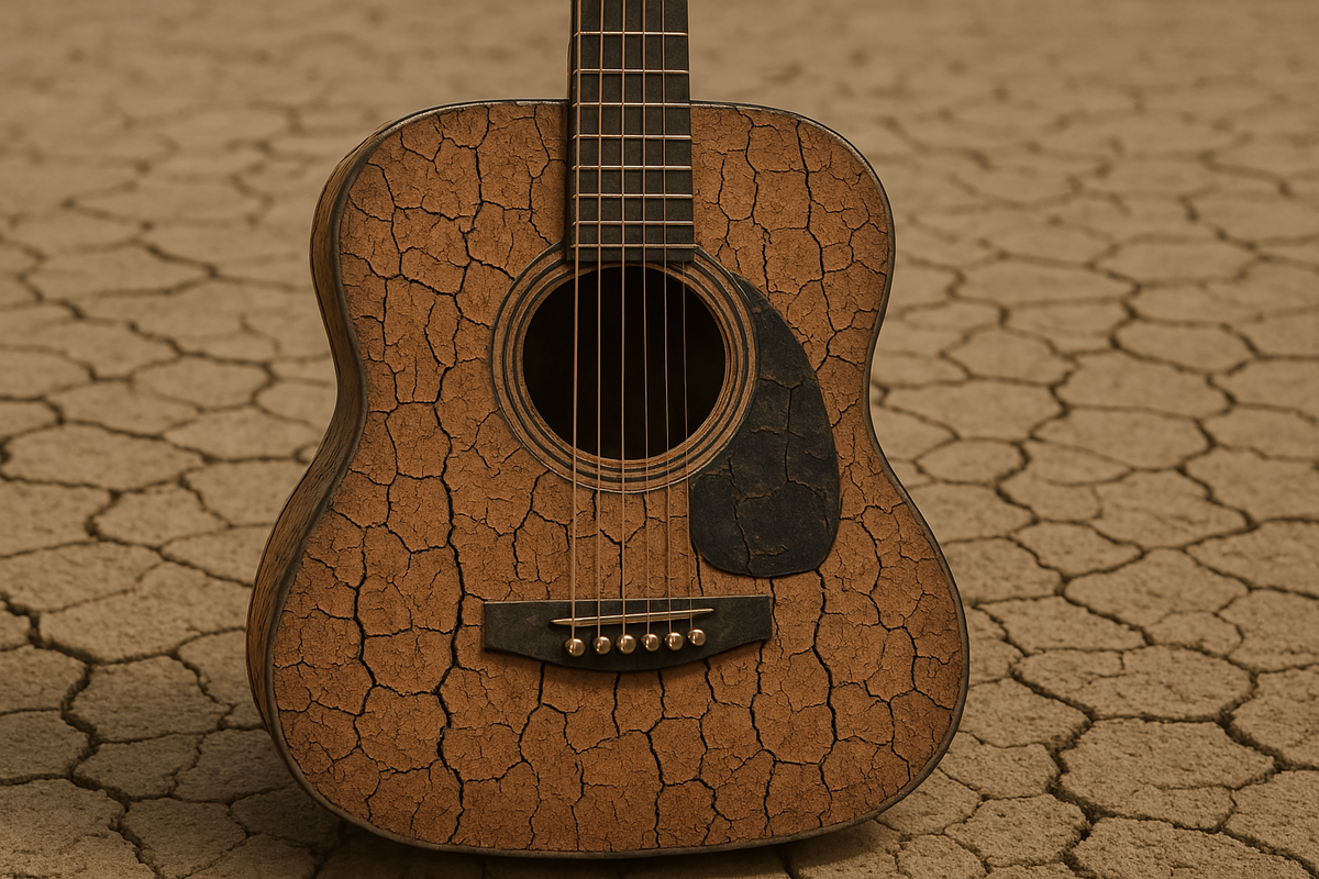 На самом деле сухости боятся не только гитары, но и все музыкальные инструменты сделанные из дерева. Более того, это касается не только музыкальных инструментов, но и любых деревянных изделий. Вы наверное видели, как деформируются доски которыми обшиты помещения. Или трескаются различные деревянные изделия. Эти проблемы обостряются зимой. И это зависит от нескольких факторов 1. Холодный воздух содержит меньше влаги 2. Отопление снижает относительную влажность 3. Отсутствие проветривания 4. Отопительные приборы сушат воздух Особенно вреден сухой воздух для Гитар, особенно акустических, действительно "боятся" сухости, и вот почему: 1. Дерево теряет влагу и трескается Корпус акустической гитары сделан из дерева (ель, кедр, красное дерево и др.), которое естественным образом содержит влагу. При низкой влажности (менее 40–50%) дерево усыхает. Другими словами, при высыхании деревянные изделия становятся меньше по размеру. Это видно на полах с натуральным паркетом, когда увеличиваются промеж