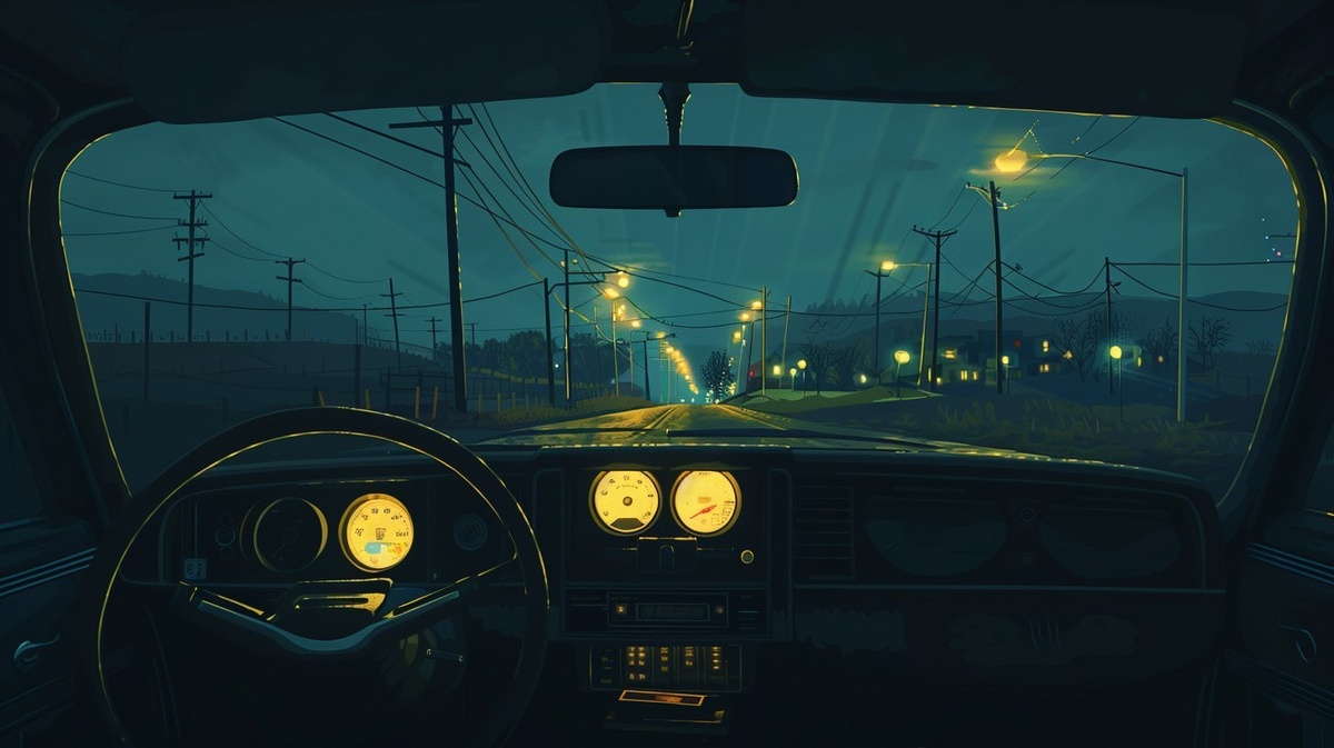 Создано на основе запроса: inside a car at night, viewed from the driver’s seat perspective, clear view of the rearview mirror and glowing center console with radio, lampposts on a narrow road ahead, soft dashboard lights, moody cinematic lighting, lonely atmosphere, liminal feeling, small town surroundings, ambient shadows, painterly and melancholic, edward hopper style --- Автоперевод: Внутри автомобиля ночью, с точки зрения сиденья водителя, ясного обзора зеркала заднего вида и светящейся центральной консоли с радио, лампостами на узкой дороге впереди, мягких огнями приборной панели, капризным кинематографическим освещением, одиноким атмосферой, ощущением лиминального, окружающей Отлично вышло? 🤔 https://dzen.ru/id/65c0c65c86e4f837c27b24d7 #ИИ #AI #нейросеть #midjourney #art