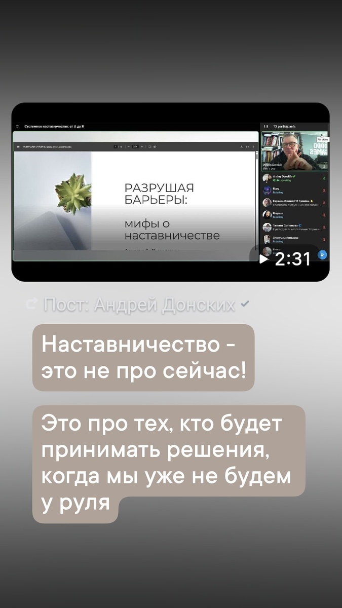 На днях провёл первый эфир из серии «Наставничество от А до Я». Говорили честно, без лозунгов, о главном: почему тема наставничества до сих пор окружена мифами — и какие из них мешают компаниям двигаться вперёд. Я поделился историями из практики, разбирал реальные кейсы и, главное — обозначил суть. Сегодня, когда многое можно купить — от знаний до лояльности, — особенно ценными становятся доверие, преемственность и смысл. Их не купить, но можно передать. Через людей. Через культуру. Через наставничество. Вот лишь несколько мыслей, которые участники эфира унесли с собой: Мы разобрали 10 самых распространённых мифов и показали, как каждый из них мешает внедрить работающую систему. Если вы руководитель, HR, наставник, методолог — вам точно будет что вынести из этого разговора. Полное саммари эфира с выжимкой ключевых тезисов, а также видеозапись эфира доступны в закрытом Telegram-канале «Системное