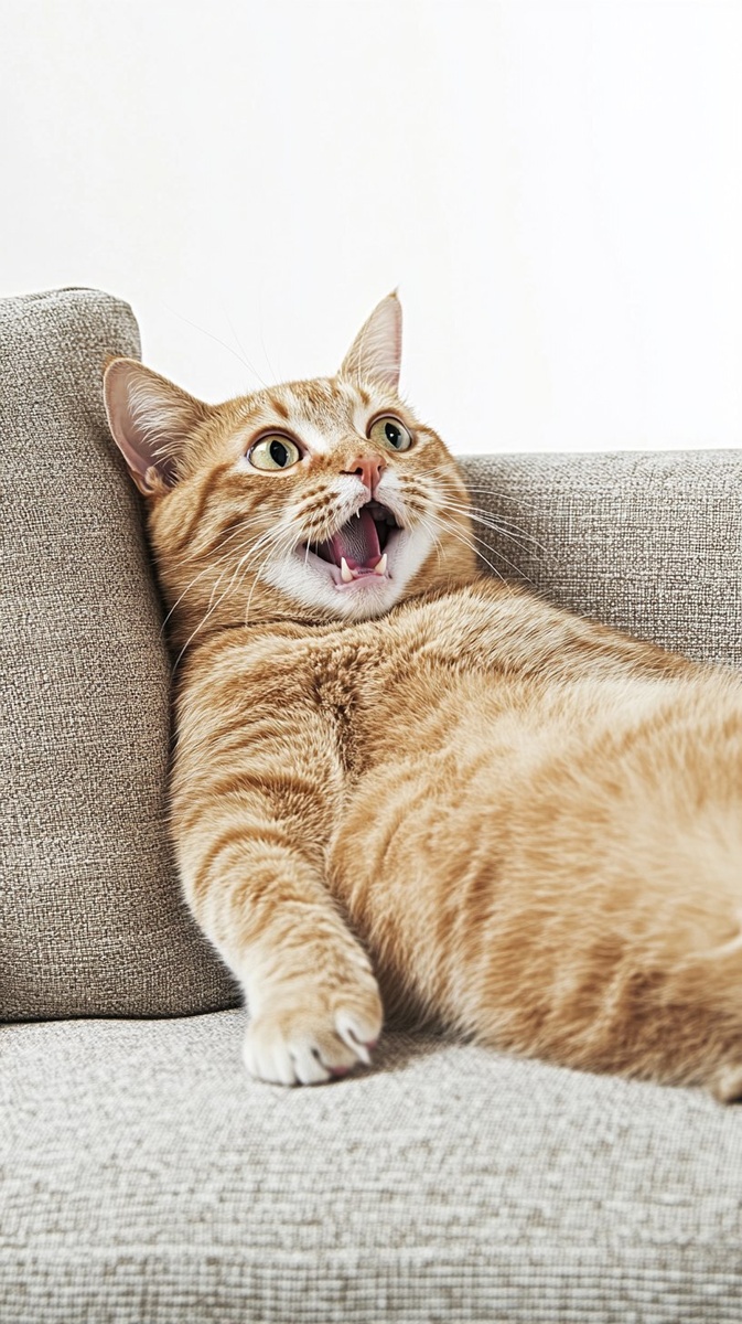 Создано на основе запроса: side view of cat lying all flat on therapist couch, cat head tilted upwards on cushion, lying flat with belly up, all relaxed, eyes wide open, mouth open, shock face, white background --- Автоперевод: Вид на сторону кошки, лежащей на диване терапевта, голова кошки наклонялась вверх по подушке, лежащей плоской с животом вверх, все расслабленные, широко открытые глаза, рот, открытый, ударное лицо, белый фон Хорошо выглядит? 🤔 https://dzen.ru/id/65c0c65c86e4f837c27b24d7 #ИИ #AI #нейросеть #midjourney #art