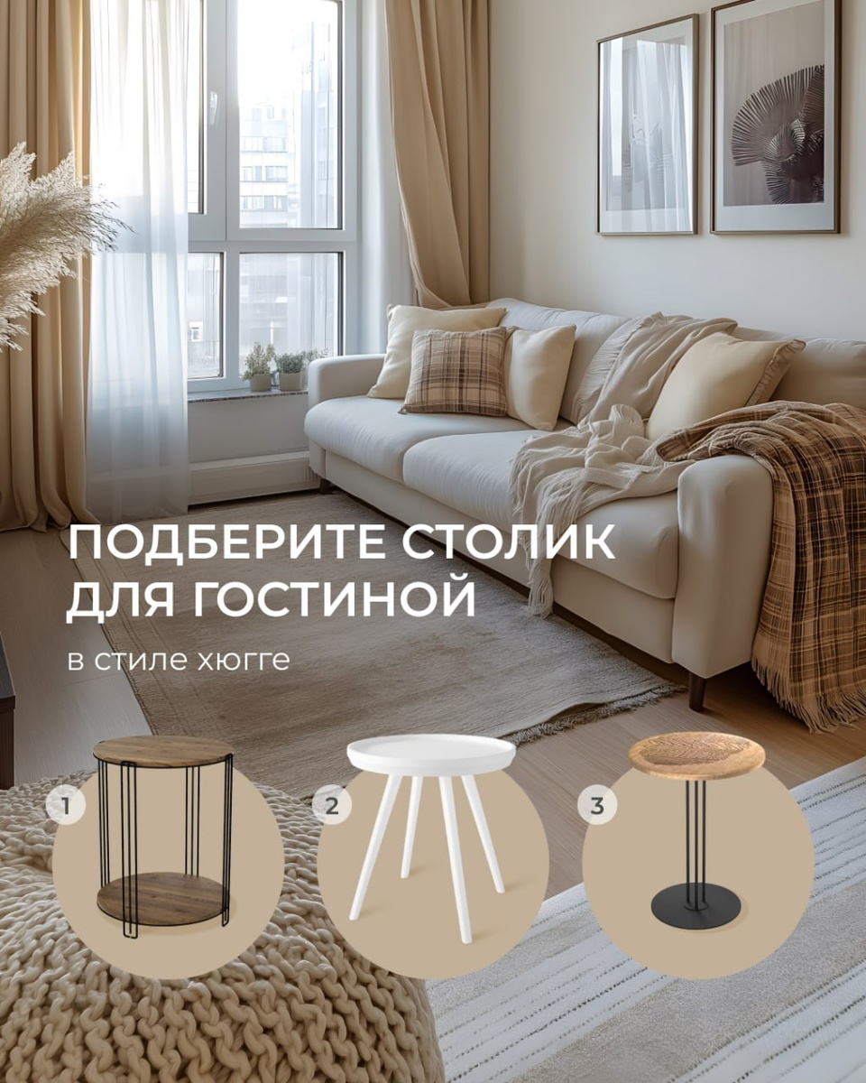 🤩 Стиль хюгге можно коротко описать как «уют, приносящий счастье» 🤩 Его отличает спокойствие и умиротворённость, предпочтение отдаётся нейтральным пастельным оттенкам. Основные цвета — белый, серый и коричневый 🤩 Предлагаем немного потренироваться и определить, какой из предложенных вариантов столиков Sheffilton подходит для гостиной в стиле хюгге? Наши претенденты: 🤩 - кофейный столик SHT-CT33; 🤩 - журнальный столик SHT-CT84; 🤩 - журнальный столик SHT-CT44-1/H43. Напишите свой ответ в комментариях 🤩