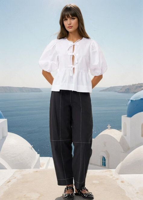 1. Модный тренд лета 2025 года: Блузки с короткими рукавами и завязками.