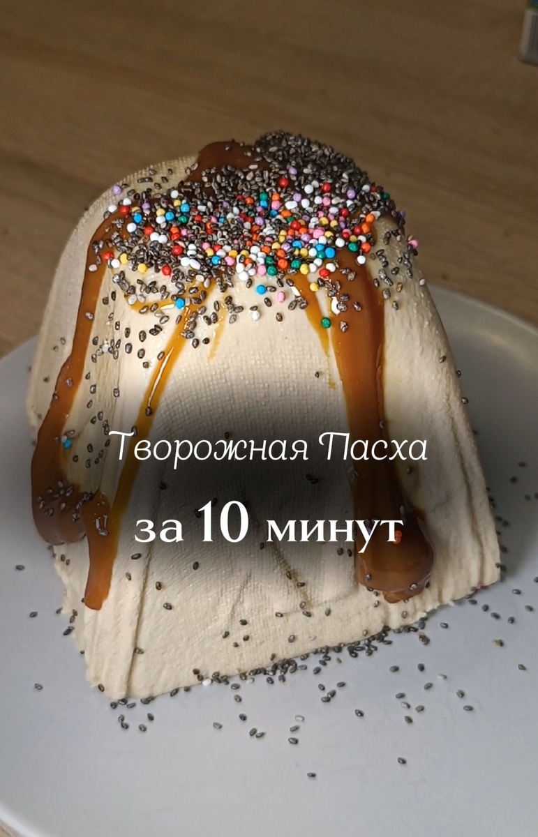 Творожная Пасха ✔️Продукты: - творог 380-400 г - сливочное масло мягкое 80-100 г - варёная сгущёнка ~80-100 г или на ваш вкус - ванилин Дополнительно: форма пасачница и марля 🥣Приготовление: Творожная Пасха Продукты: - творог 300 г - сливочное масло мягкое комнатной температуры 80г - вареная сгущенка 170г - сметана 20% 3 столовые ложки - ванилин Приготовление: 1) В чаше блендера смешать ингредиенты: творог, масло, сметана, вареная сгущенка и ванилин, Взбить до однородности, чтобы не было комочков. 2) Подготовить пасачницу и смочить марлю. 3) перевернуть пасачницу узкой вершиной вниз на тарелку или поднос, распределить внутрь марлю и заполнить полученной смесью, разравнять ложкой/лопаткой. 4) Сверху закрыть оставшейся марлей, потом накрыть тарелкой и поставить груз. Убрать в холодильник не менее, чем на 10 часов. 5) Обязательно периодически проверяйте поднос. За счет груза будет выделяться лишняя сыворотка, её нужно сливать. Если творог не сильной жирности, то сыворотки может воо