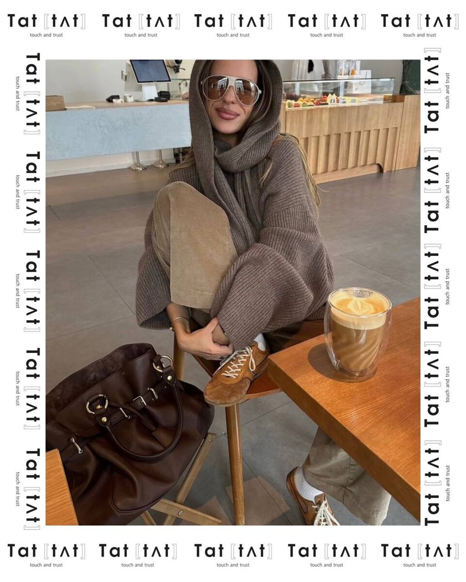 Для теплоты отправляем вам весточкой cozy образ Саши Буримовой в свитере от The Bazilika с тотемной сумкой Celine