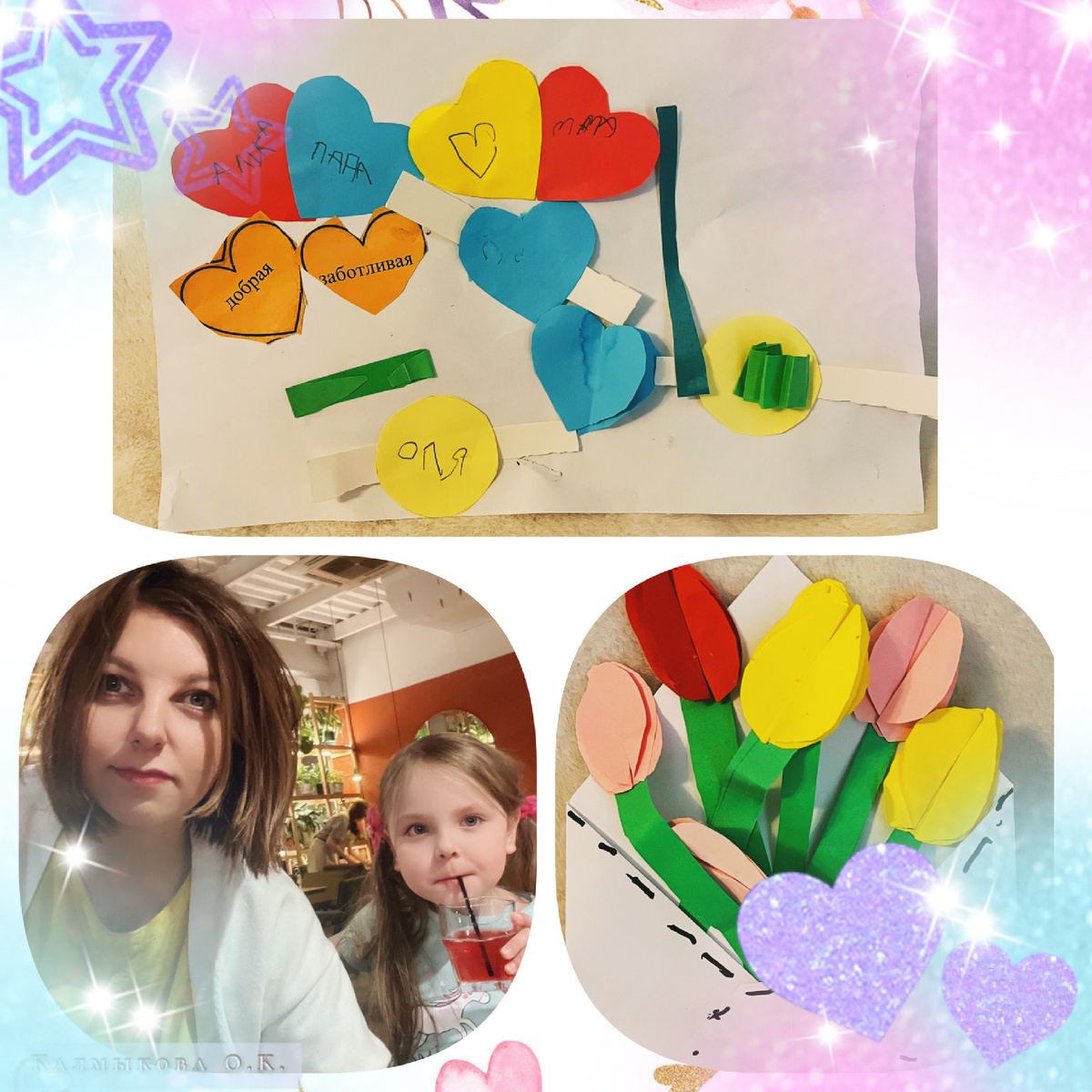 Воспитывая ребенка мы часто не придаем значение как нас воспринимают наши дети Я тоже об этом не задумывалась, я мама, вот моя дочка, я о ней забочусь Как то дочка сказала мне: «Спасибо, добрая мама», и я об этом через какое-то время забыла А недавно из садика дочка принесла поделку, посмотрите на фотографии видно и я узнала, как видит и воспринимает меня моя доченька + цветочки для мамы Для нее я ДОБРАЯ и ЗАБОТЛИВАЯ Вот так МЕНЯ маму воспринимает мой ребенок: МАМА ДОБРАЯ И ЗАБОТЛИВАЯ И я задумалась и ведь на самом деле это важно, как наши дети нас воспринимают У нас может быть одно видение нас, наших отношений к ребенку и с ребенком, а у него самого совсем другое И это очень ЦЕННЫЙ ПОКАЗАТЕЛЬ, показатель того, что мы, как родители можем сделать для наших детей, как мы можем улучшить наши отношения, если в этом есть необходимость? - Что видит этот маленький или уже не совсем маленький наш человечек? - Какие мы для него? Добрые, заботливые, строгие, злые, колючие, холодные