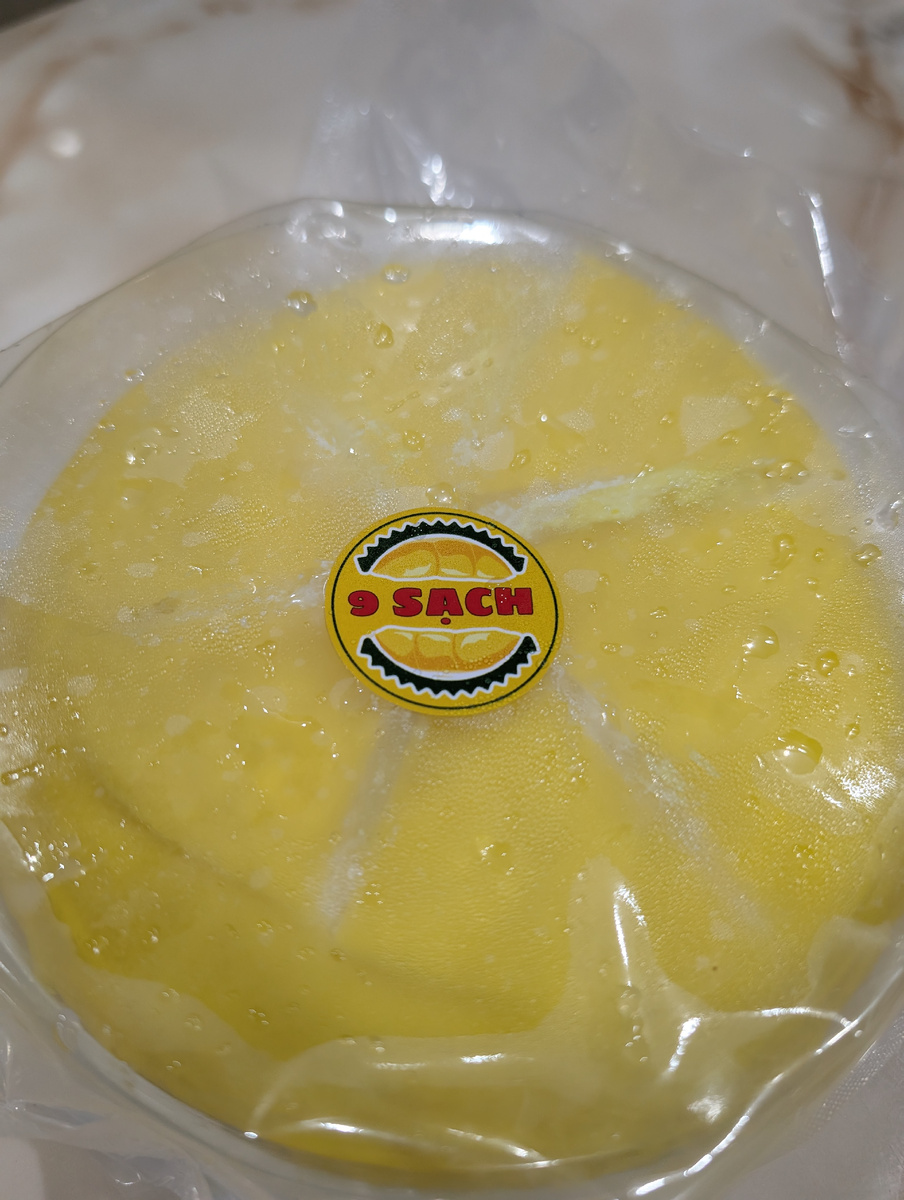 Это был очередной гостинец от родственников . А я как раз уже дозрела до того, чтобы попробовать что-нибудь с дурианом. Сам плод пока ещё, наверное , не смогу сьесть, а что-то, где он присутствует, уже готова. Например , мороженое с дурианом или какой нибудь пирожок с начинкой из него. А тут и случай подходящий представился. К характерному дуриановому запаху я довольно легко привыкла. Во многих местах в городе этот плод продается, о чем красноречиво свидетельствует его аромат. Как по мне, пахнет он газом, именно тем, на котором мы готовим еду на кухне, и от утечек которого бывают разные страшные неприятности Здесь частенько пахнет так, будто утечка газа произошла. Но на самом деле это дуриан своих потребителей приманивает. В общем, передали нам по случаю тортик, довольно милый на вид.. Сын с невесткой сразу отказались его есть, но были не против того, чтобы деликатес пролежал в холодильнике . И на том, как говорится, спасибо. Вечером к чаю я его открыла. Отрезала себе кусочек. Вкус