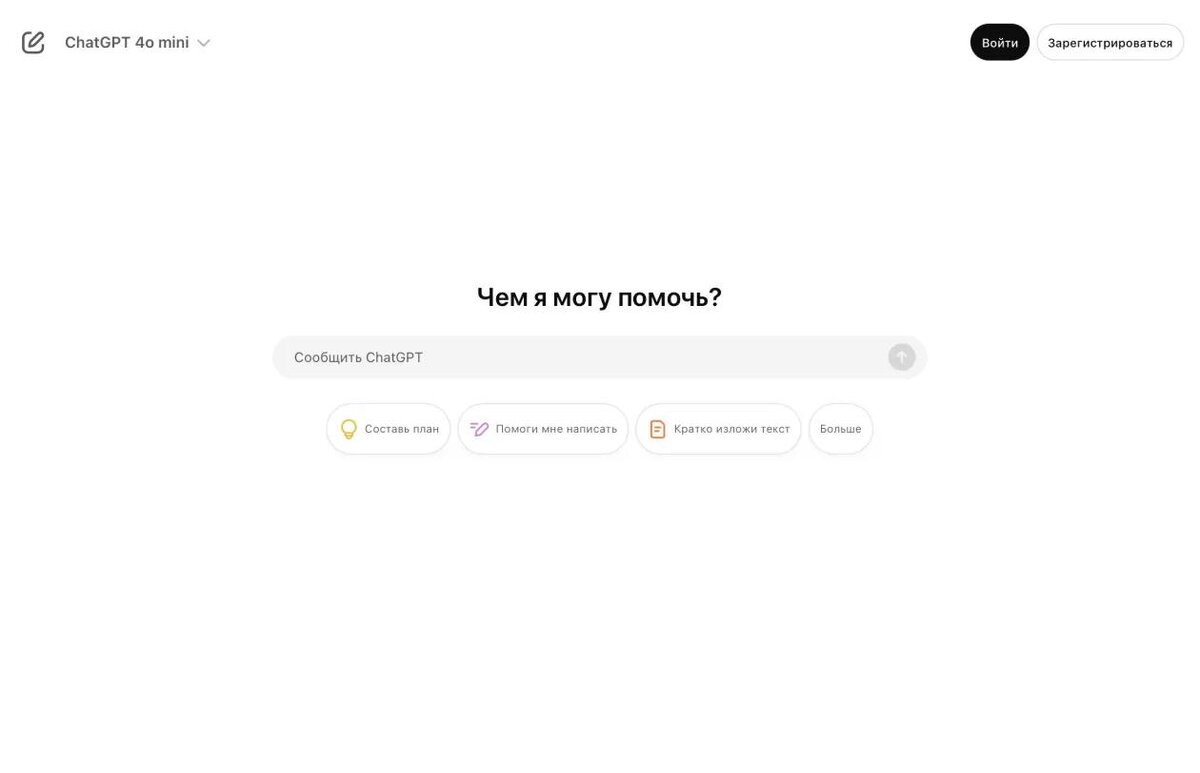 ™️Как пользоваться ChatGPT в России? Недавно осознал, что далеко не все знаю, как попасть в чат, пришла в голову инструкция) ChatGPT — это прорывной ИИ-бот, с которым можно общаться, просить написать тексты любой сложности, искать информацию даже генерировать реалистичные картинки! В начале апреля 2024 года OpenAI разрешила пользоваться ChatGPT без регистрации. Чтобы открыть сайт, понадобится сменить IP-адрес с российского на любой иностранный. 🤯(к сожалению по закону не могу рекомендовать и даже рассказывать про сервисы по обходу этих ограничений, но думаю вы уже поняли о чем идет речь, мы живем с запрещенной соцсетью и многие понимают как туда заходить). ✝️Чтобы воспользоваться ChatGPT бесплатно и без регистрации, перейдите на сайт OpenAI. После этого откроется диалог с чат-ботом, в котором можно сразу написать текстовый запрос. Если не знаете, что попробовать, воспользуйтесь подсказками. 🥃Этот режим — отличный способ познакомиться с ChatGPT, но у него есть ограничения. Д