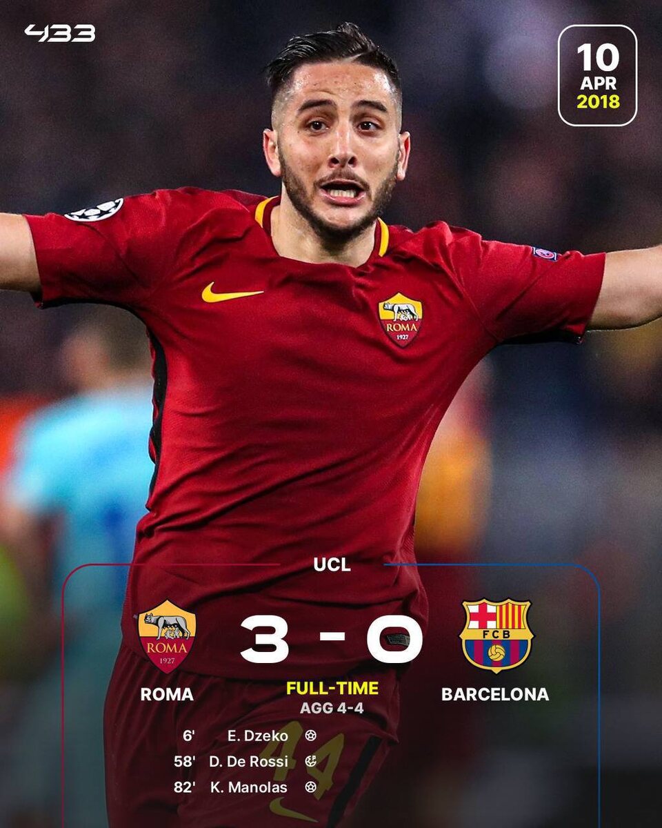 🔙В этот день в 2018 году: ⚽️🔥«Рома» сотворила камбэк и прошла в 1/2 Лиги Чемпионов.