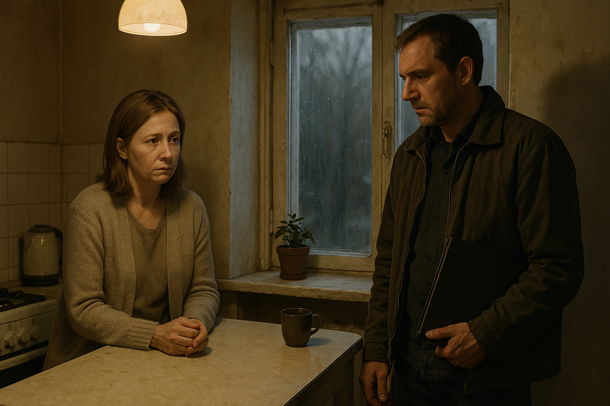 Он постучал папкой с документами по столу, напоминая, что ещё не всё подписано. Людмила вздрогнула: на дворе был конец октября, снаружи начинал накрапывать мелкий дождь, а в этой маленькой кухне внезапно стало холодно, словно сквозняк прошёл не только по комнате, но и по её душе.