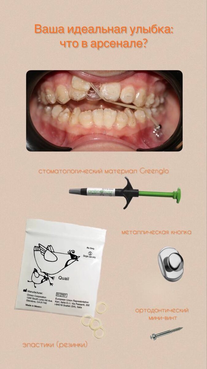 Элайнеры — отличное решение для выравнивания зубов, но иногда для достижения более точного и быстрого результата необходимы дополнительные приспособления. Рассмотрим, какие детали могут помочь в процессе коррекции. — Кнопки Кнопки — это небольшие элементы, которые прикрепляются к зубам для создания дополнительного воздействия на их движение. Эти устройства, используемые в сочетании с цепочками и эластиками, позволяют точно и эффективно перемещать зубы. Кнопки удобны в носке, не вызывают дискомфорта и не собирают остатки пищи, что делает их комфортными в использовании. — Чейны (цепочки) Чейны — это резиновые цепочки, которые надеваются на кнопки или брекеты. Они помогают устранить промежутки между зубами и позволяют «стянуть» их. Эти цепочки почти незаметны и бывают прозрачными, но для тех, кто хочет добавить ярких акцентов, доступны и цветные варианты. — Мини-винты Мини-винты — это титановые устройства, которые устанавливаются в кость челюсти. Они служат точкой опоры для ортод