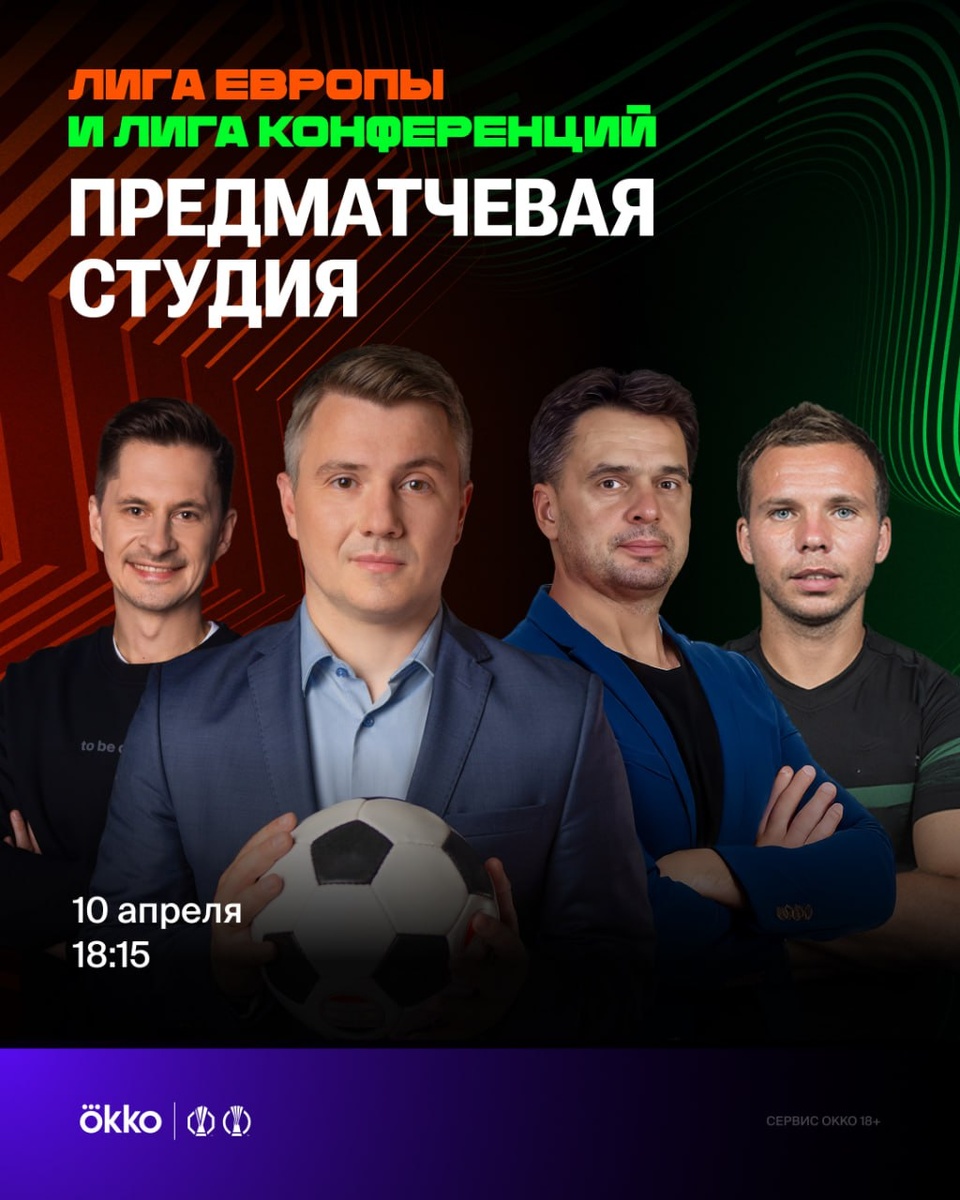 Четверг. Футбол. Еврокубки. Чипсы. Кола. Что еще нужно для счастья? 🤩 Разве что включить нашу студию, в которой Кирилл Пупшев, Владимир Стогниенко, Михаил Лихачев и Роман Шишкин обсудят сегодняшние встречи в Лиге Европы и Лиге конференций. Ждем тебя в 18:15 в сервисе Okko, на YouTube или в VK Видео 🔜