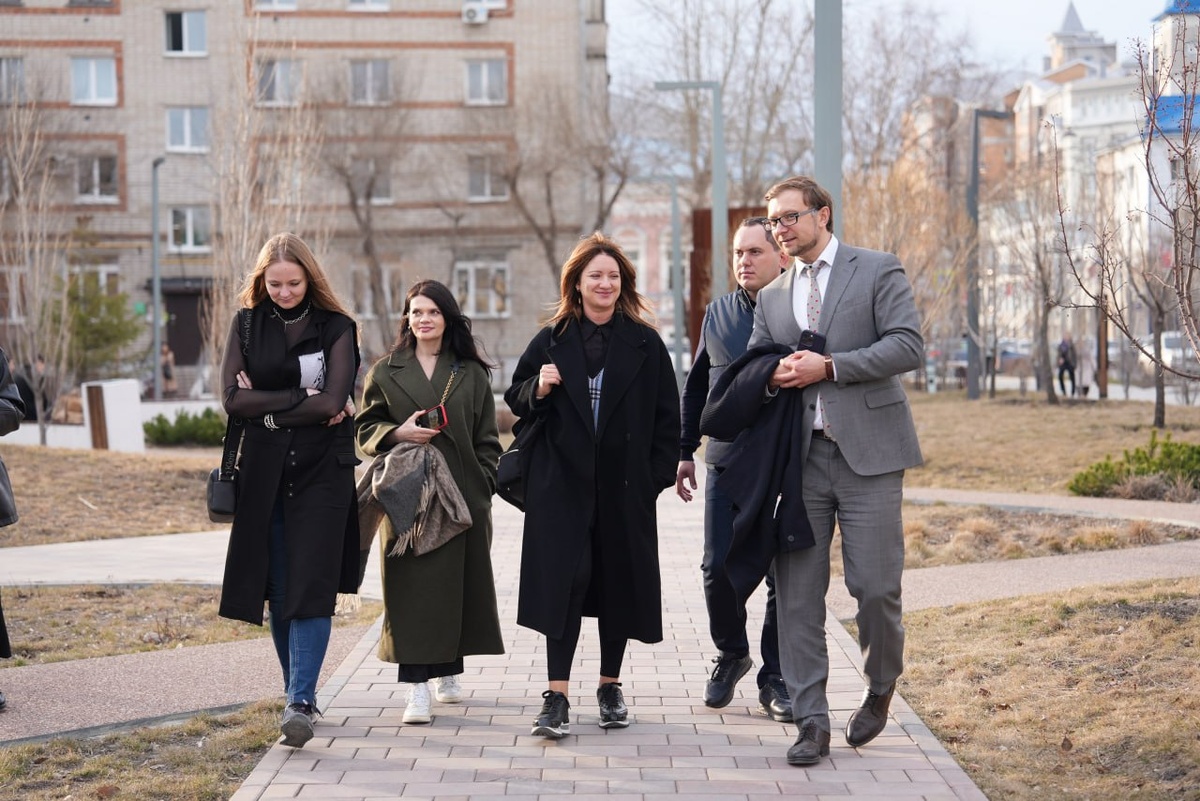 Экскурсию с погружением в историю создания сквера провел советник главы города, генеральный директор центра стратегического развития «Сибирь» Артём Павлюченко.