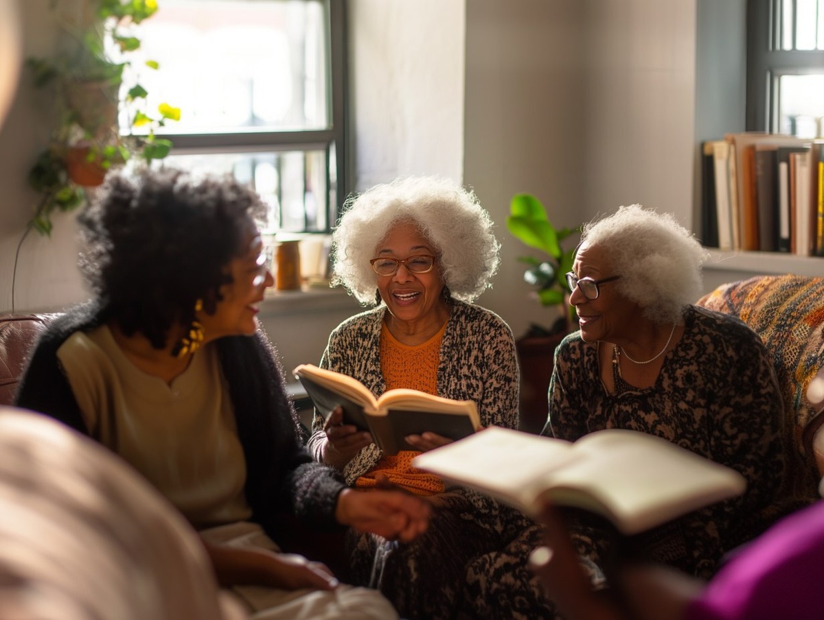 Создано на основе запроса: Bronx senior citizens book group. reading. happy and gesticulating wildly. quiet wholesome atmosphere. summer time clothes. Black, Latino, elderly people. inclusive and community-centered atmosphere. editorial lighting, casual posture, minimalist studio setup, soft shadows, portrait photography style, ultra-realistic details, --- Автоперевод: Bronx Senior Citizens Book Group. Как тебе эта генерация? 🤔 https://dzen.ru/id/65c0c65c86e4f837c27b24d7 #ИИ #AI #нейросеть #midjourney #art