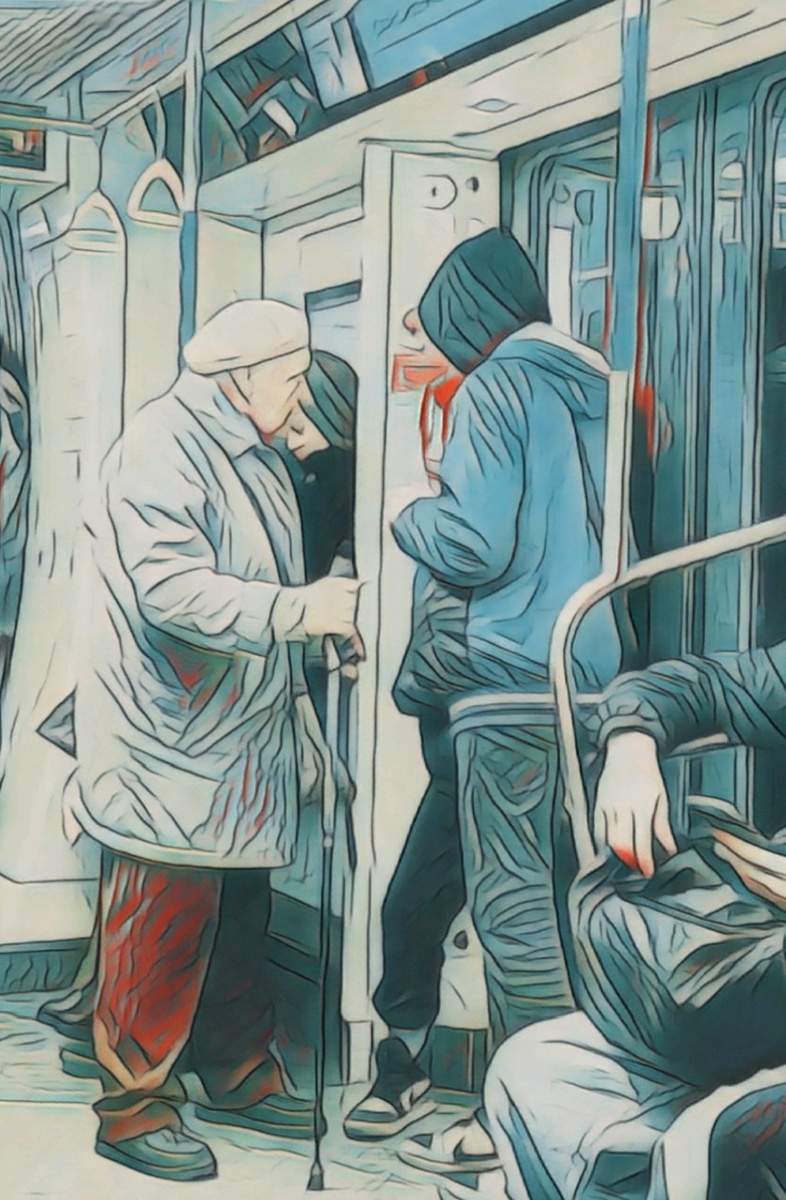 Как-то в среду вечером я возвращалась с дачи. Большого количества народу в транспорте уже не было - все спешащие с работы разъехались по домам и толпы уже не создавали. Немного уставшая, я села на свободное место в вагоне метро, и, как обычно, закрыла глаза. Отключившись от реальности, погрузилась в медитацию - ничего не вижу, почти ничего не слышу, После того, как поезд отошёл от очередной станции, начал до меня доноситься негромкий разговор. Я поняла, что говорящие только что вошли в вагон и что-то там случилось, что послужило темой для их общения. Один голос женский тихий, мягкий, можно сказать старческий, как у актрисы из передачи "В гостях у сказки", а два других молодые, мальчишечьи - звонкие, немного взахлёб, но при этом говорили они негромко. - А где Вы работали?-спрашивали мальчишки. - В больнице работала, - отвечала бабушка. - Так значит Вы людей лечили? Так ведь это дело такое важное! Значит, у Вас должна быть большая пенсия?, - не унималась ребетня.