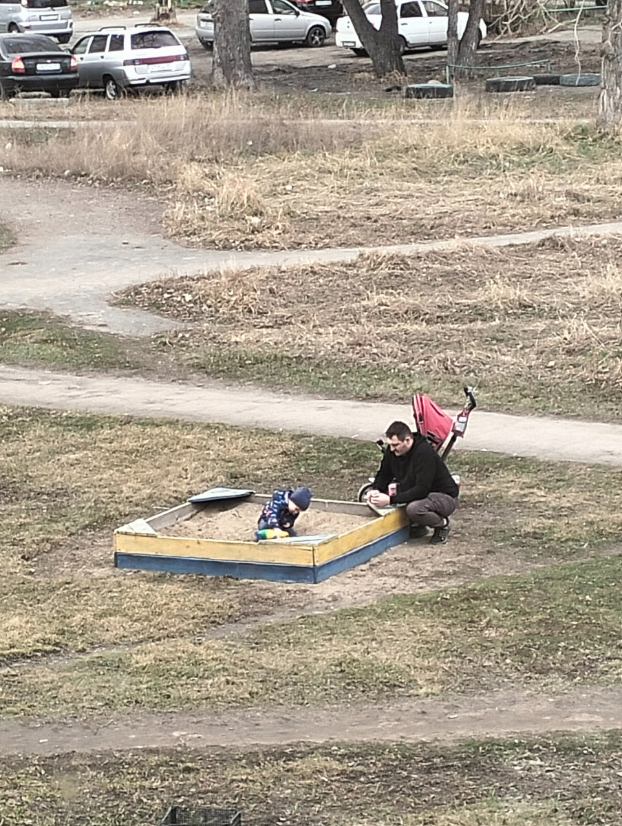 У нас сегодня абсолютно летняя погода ☀️, +22°. Правда, в нагрузку к прекрасной погоде дует сильный ветер , но мы к ветрам привычные. Радуясь теплу, народ вышел на улицу. Малыши с родителями : Подростки, предпочитающие активный отдых, организовали велодром: Любители пассивного отдыха теплом наслаждаются сидя: Кое-кто уже и шорты надел: Пользуясь теплой погодой наша старшая по дому организовала жильцов на субботник по уборке придомовой территории. Молодёжь ( все, кто ещё не на пенсии) убирали территорию с той стороны, где подъезды, т.к. она площадью побольше. А мы, бабки, убирали за домом, у кого выходят на ту сторону два окна, убирали возле своих окон, а у кого одно окно - убирали возле своего и ещё одного какого-нибудь . Вот я пошла на субботник . Скоро здесь зацветёт сирень и мальвы: Скоро распустятся листочки на берёзках и вырастут иголочки на лиственнице: Вот мой фронт работ : Вот результат моего труда: А вот результат коллективного труда: Поработали хорошо, даже металлоконструкции