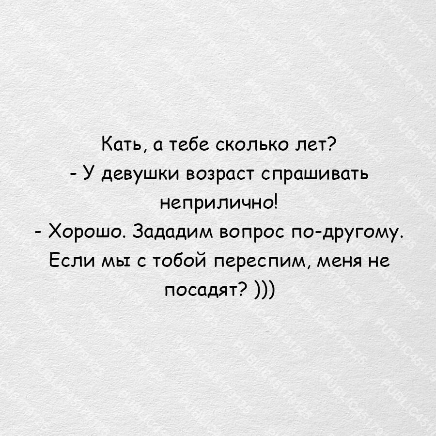 Очередная выдумка, что неприлично спрашивать возраст у женщин, стереотип я считаю. Почему женщинам можно спрашивать мужской возраст, а женский нельзя? Типа не культурно, неприлично, ненормально. Кто это придумал? У женщин комплексы что ли? Почему я не должен знать, сколько ей лет? Может она старше меня слишком, ей 45-50, а выглядит на 30 или на 25, но это уже чудо выглядеть в 50 на 25. Да и вообще положено знать возраст при знакомстве у девушек и женщин, я ничего плохого в этом не вижу или наоборот выглядит она на 20-30 лет, а по факту ей 18-ти нет, ей 16, 17 и здравствуй тюрьма, ничего не докажешь потом, поэтому важно знать возраст девушек и женщин. Зачем эти проблемы? Девочки школьницы бывает красятся, наряжаются и прочую косметику применяют так, что реально не отличишь их, а они оказывается несовершеннолетние. Вон я даже чихнул дописывая статью, значит тем более правда. Сажать значит надо девочек этих, чтобы не обманывали взрослых парней и мужчин, что им давно за 18 или 18 и треб