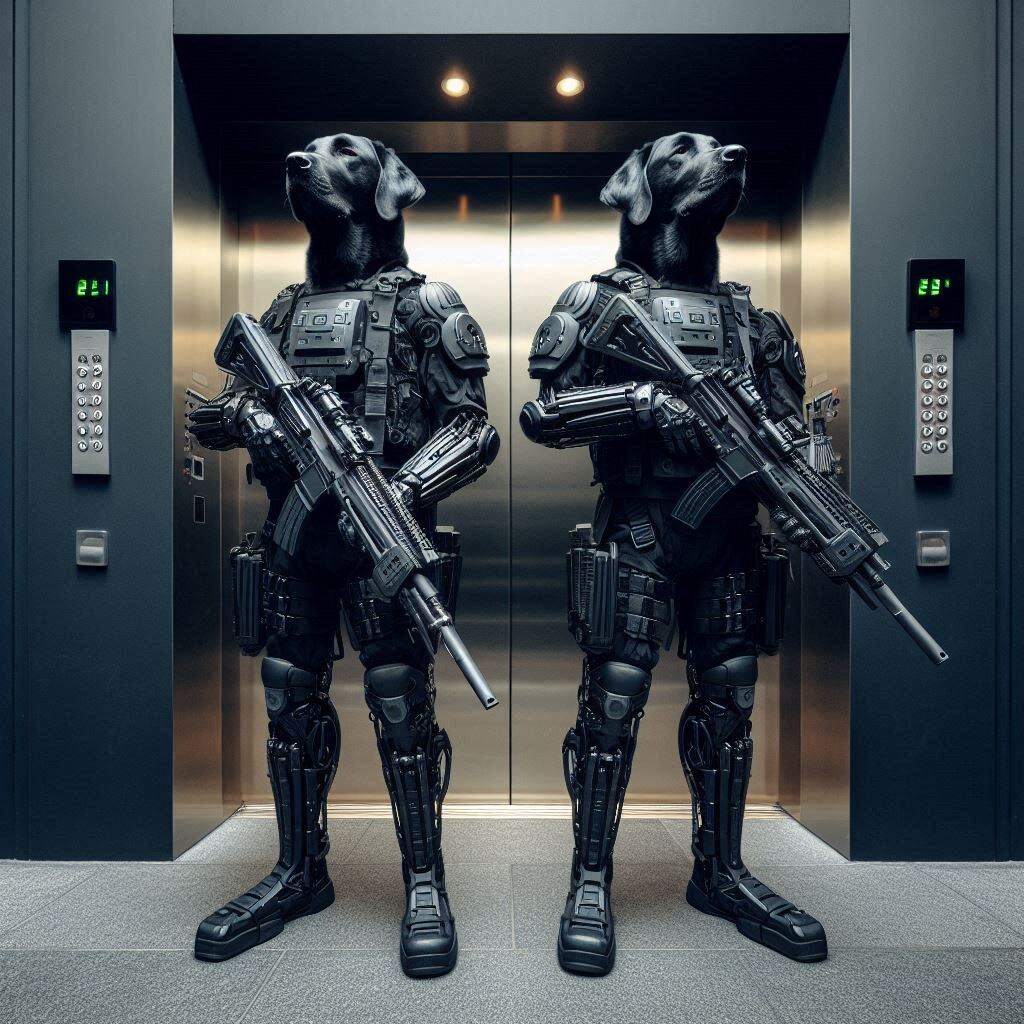 Два черных лабрадора стояли на охране лифта на верхние этажи станции. Как раз к начальнику. Генри не стал дожидаться их реакции, а уж тем более разговаривать. Он на полной скорости понесся на четырех лапах на них. Ведь от Чарли он уже успел выяснить, что у начальника, таких лабрадоров под сотню. А он себя конечно считал профессиональным солдатом. но с таким количеством ему никак не справится. Когда они его заметили, было уже слишком поздно. Благодаря генной модификации и протезированию, черный доберман мог по скорости поспорить со скоростным болидом в до космическую эру. Ему понадобилось несколько секунд, чтобы рывком преодолеть это расстояние. Два хлестких удара лапами и вот уже два бравых охранника падают мордами в пол. Быстро выхватив у одного из них оружие, он тут же рывков запрыгнул в лифт. Сзади раздались звуки стрельбы, а над головой пролетели вспышки лазеров. Он быстро нажал на кнопку лифта, а сам начал отстреливаться. Снаружи уже собралось больше десятка охранников. Поняв, что