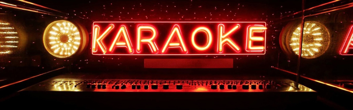Создано на основе запроса: A neon sign with the word "KARAOKE" highlighted in red is reflected on black glass and surrounded by yellow and white lights. The background is made in dark color to emphasize the bright colors of the letters. This scene reflects the retro-futuristic vibes of American club culture of the mid-20th century vector image. Without perspective