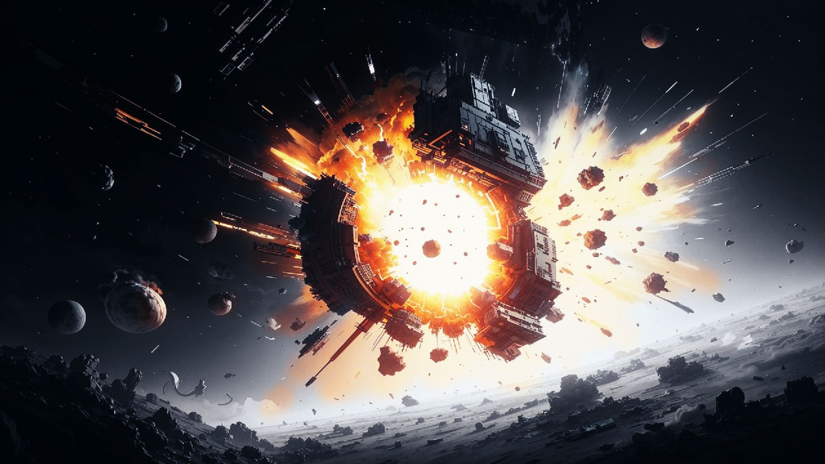 Я уже собирался обратно, но вдруг это невзрачное светило выбросило огромный протуберанец, накрывший станцию и все вокруг. В принципе, ничего особо страшного в этом не было, защита станции вполне способна в автоматическом режиме справиться с подобным явлением. Но! Одновременно с коварным выпадом со стороны звезды, станция попала в поток жесткого излучения неизвестной природы из центра галактики. Электроника моего транспортного модуля сошла с ума, и он сделал невероятный кульбит, разрушив половину станции.